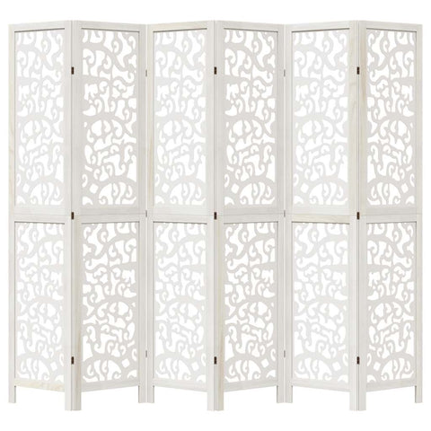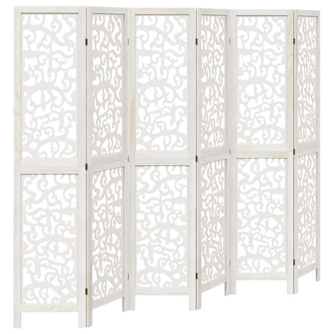 Room Divider 6 Panels White Solid Wood Paulownia 358747