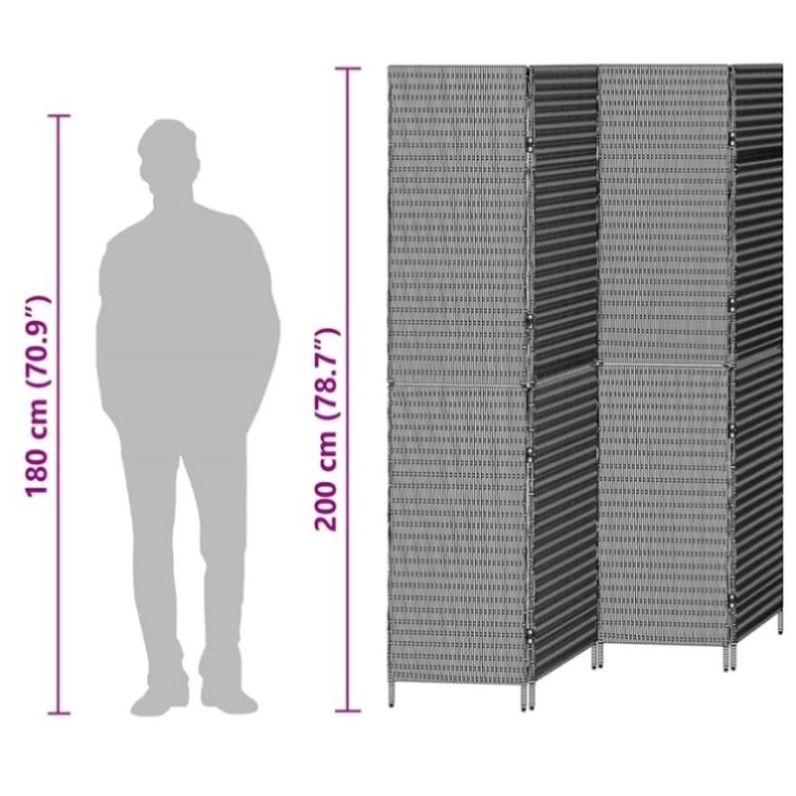 This Poly Rattan Foldable Room Divider adds a dash of modern elegance to your space, combining good looks with practical benefits. Its sleek rectangular shape gives any room a bit of oomph while creating separate areas without any permanent changes. If you’re into clean lines and minimal decor, this divider fits right in, giving you a classy backdrop that works with both contemporary and traditional styles. Plus, it’s easy to move or tuck away when you don’t need it. Poly Rattan Material: Made with high-quality poly rattan, this room divider is built to last and looks great. It’s tough and stands up well to daily use, while its opaque design keeps your space private but still stylish. Powder-Coated Steel Frame: With a sturdy powder-coated steel frame, this divider is all about stability and strength. It keeps the divider strong enough to clearly define spaces. Foldable Design: This collapsible feature means you can easily store it or cart it around. It's perfect if you like to rearrange your space or need a temporary setup without sticking to anything permanent. UV-Resistant Properties: Built to take on sunlight, this divider stays looking fresh and functions well still, even in bright rooms. It looks good and won't fade over time. Simple Assembly Required: It takes just two people and a screwdriver to assemble, making setup easy. You can adjust it to fit your needs as they change.
