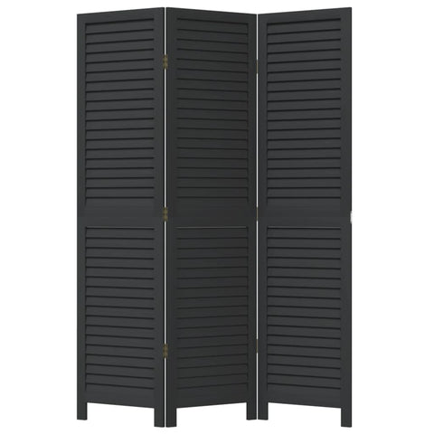 Room Divider 3 Panels Black Solid Wood Paulownia 358845