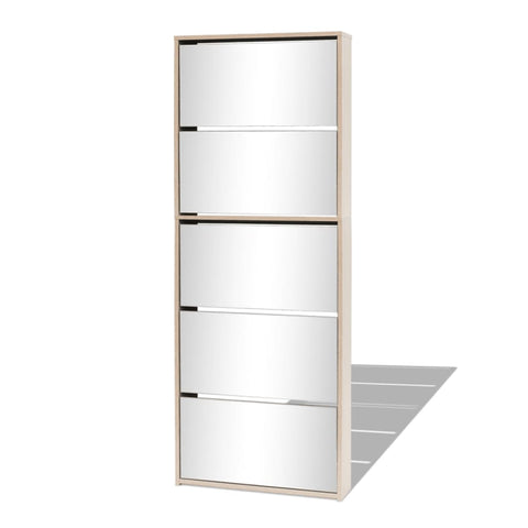 Shoe Cabinet 5-Layer Mirror Oak 63x17x169.5 cm 273937