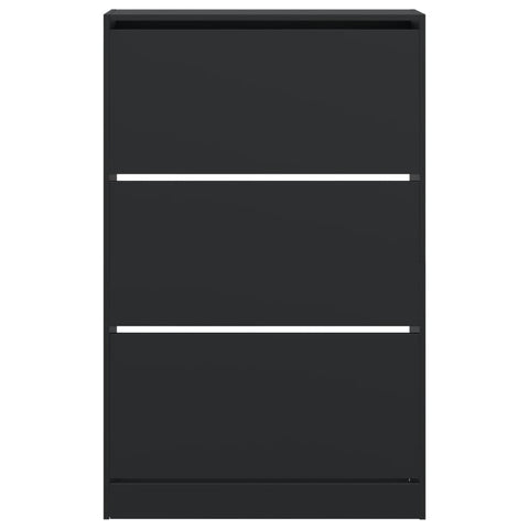 This shoe cabinet is an excellent choice to store your shoes in an organised way, especially for tight and narrow spaces thanks to its compact design. Durable material: The engineered wood is of exceptional quality with a smooth surface and also features strength, stability, and resistance to moisture.Ample storage space: This shoe rack features 3 flip drawers, providing ample space to keep your shoes within reach and well organised.Practical top: The sturdy top of the shoe cupboard is ideal for displaying decorative objects, photo frames, or potted plants.Space-saving design: The slim shoe storage cabinet is designed to perfectly fit small spaces like entryway, hallway, mudroom, etc. Warning:To prevent it from tipping over, this product must be used with the provided wall attachment device.