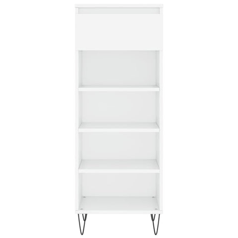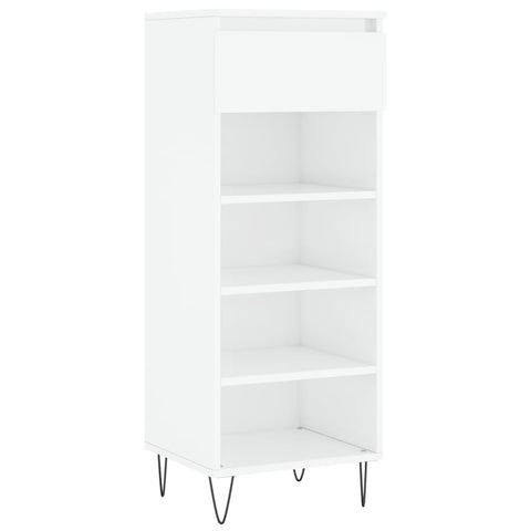Keep your shoes away from dust and cluttering to create a tidy environment with this elegant shoe cabinet! Durable material: The engineered wood is of exceptional quality with smooth surface and also features strength, stability and resistance to moisture. Made of engineered wood, the shoe rack is easy to clean.Ample storage space: With 4 open compartments and 1 drawer, the shoe storage provides ample storage space for keeping your shoes and other items well organised.Sturdy top: The top of the shoe cupboard is ideal for displaying decorative objects, photo frames, or potted plants.Metal legs: The metal legs add a modern and calm style to your interior while ensuring stability. Warning:To prevent it being overturned, this product must be used with the provided wall attachment device.