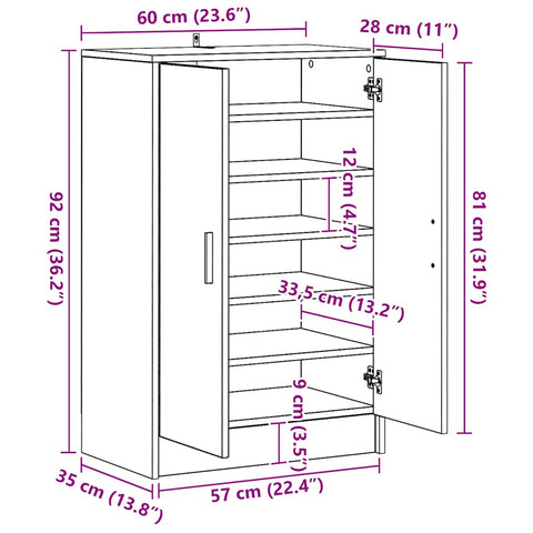 Shoe Cabinet Sonoma Oak 60x35x92 cm Engineered Wood 808930