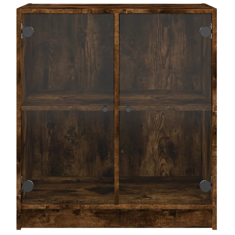 Side Cabinet with Glass Doors Smoked Oak 68x37x75.5 cm 836424
