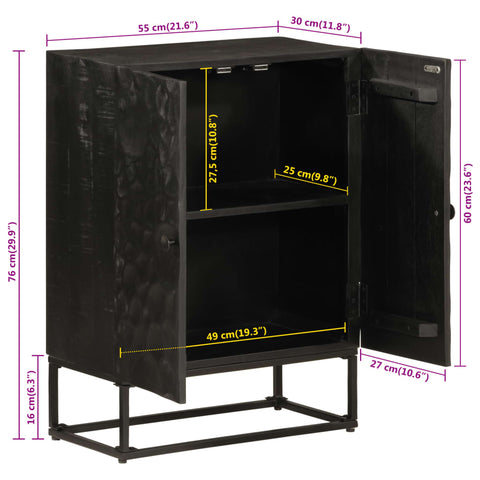 Sideboard Black 55x30x76 cm Solid Wood Mango and Iron 372005