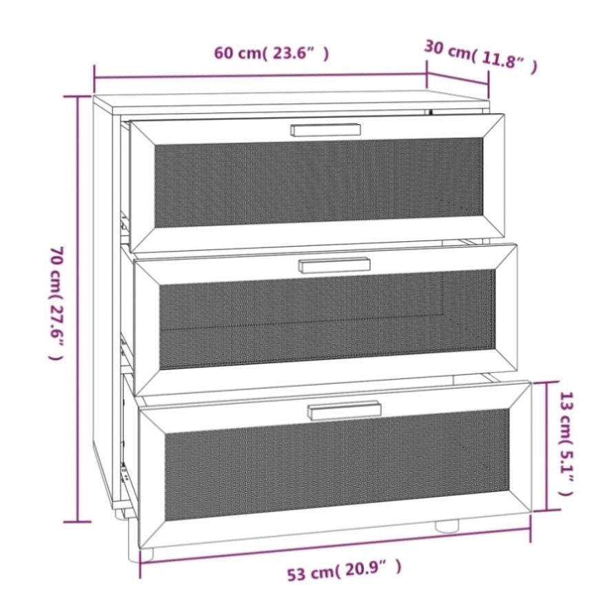 - Dimensions: 60 x 30 x 70 cm (W x D x H)