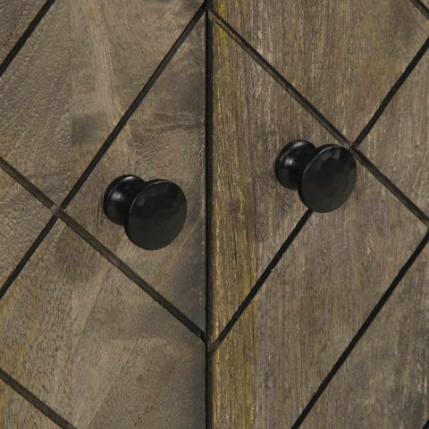 • Material: Solid mango wood with grey finish sanblasting look, engineered wood, metal