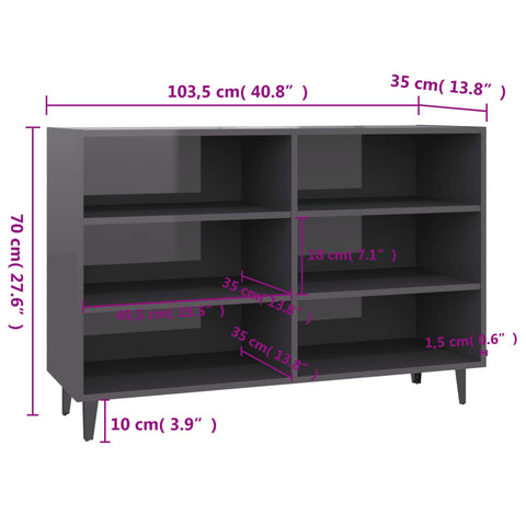 Sideboard High Gloss Grey 103.5x35x70 cm Engineered Wood 806048