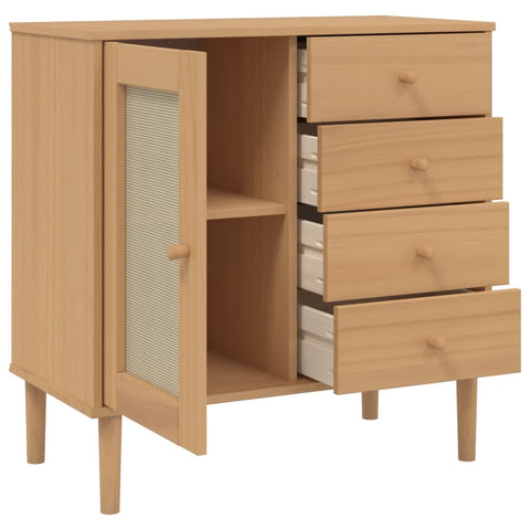 Sideboard SENJA Rattan Look Brown 80x40x80 cm Solid Wood Pine 358037