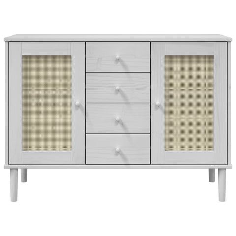Sideboard SENJA Rattan Look White 112x40x80 cm Solid Wood Pine 358026
