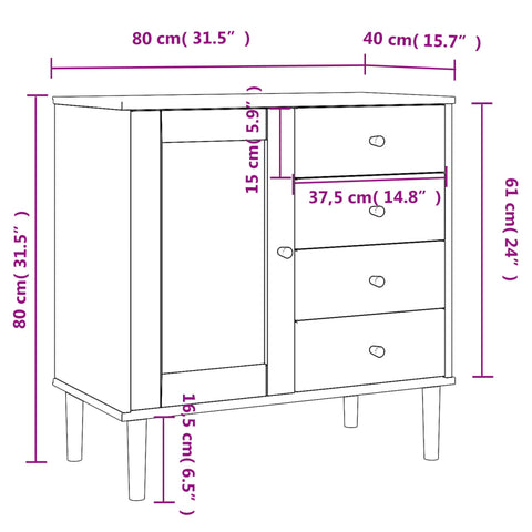 This wooden sideboard featuring a minimalist charm is designed to meet your storage requirements while adding a unique look to your room. Solid pine wood: Solid pine wood is a beautiful natural material. Pine wood has a straight grain, and the knots give the material its signature, rustic look.UV varnish: UV varnish is a special type of varnish that's finished using an ultraviolet drying machine. It creates a more vivid, more luxurious and more tactile finish when compared to non-UV varnishes.Ample storage space: This side cabinet has 4 drawers and 2 compartments with a door, offering ample storage space for keeping your magazines, books, DVDs, multimedia devices and other essentials well organised and within reach.Rattan look surface: The storage cabinet's door surface is handcrafted from poly rattan, a two-tone blend of midcentury modern and boho that adds a cozy yet stylish touch to your space.Sturdy top: The sturdy top is perfect for placing potted plants, framed photos and other decorative items. Warning:To prevent it being overturned, this product must be used with the provided wall attachment device.