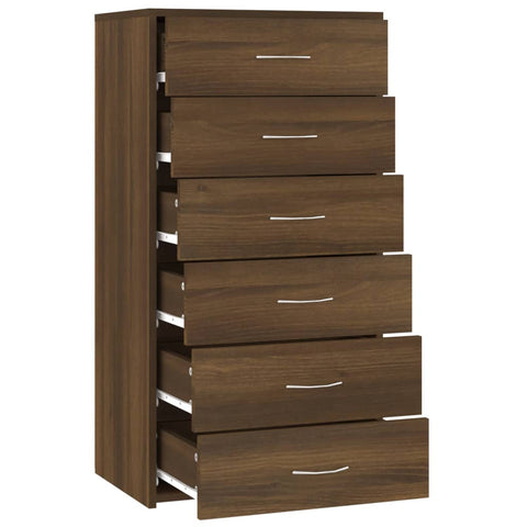 Sideboard with 6 Drawers Brown Oak 50x34x96 cm Engineered Wood 815365