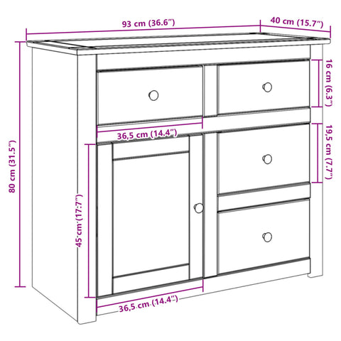 Sideboard with Drawers Panama 93x40x80 cm Solid Wood Pine 4016384