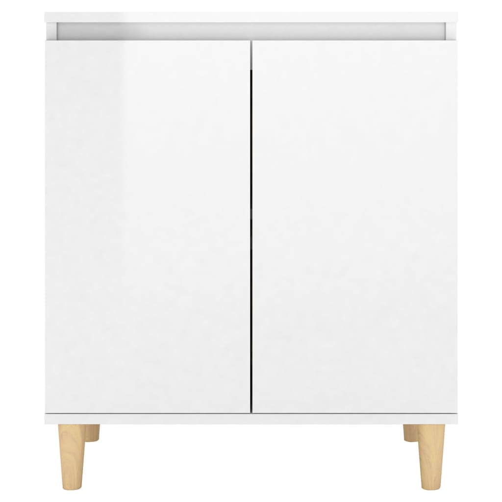 Sideboard&Solid Wood Legs High Gloss White 60x35x70cm Engineered Wood 806073