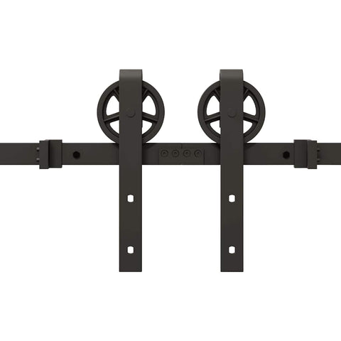 This sliding door hardware kit is ideal for extending the length of your flat sliding door rails! Safe and reliable: Thanks to the internal bearings, your doors can slide smoothly and quietly. Door stops are also included to prevent the derailing of the rollers, while the rubber gaskets will buffer the bump from rollers and reduce the noise.Heavy-duty material: Powder-coated steel is strong, stable, durable, and corrosion-resistant, ensuring long-lasting performance.Ideal for a wider door opening: This barn door track joiner is designed to join two tracks for a wider door opening or double barn door applications.Easy installation: Easily connect two barn door tracks using the included mounting accessories with the barn door rail joiner. Just attach the rail joiner to the ends of the tracks, fasten the screws securely, and you're all set for smooth operation. Good to know:The delivery includes sliding door hardware kit only. The door is not included in the delivery.Each rail end needs to be pre-drilled with 2 holes for proper installation.