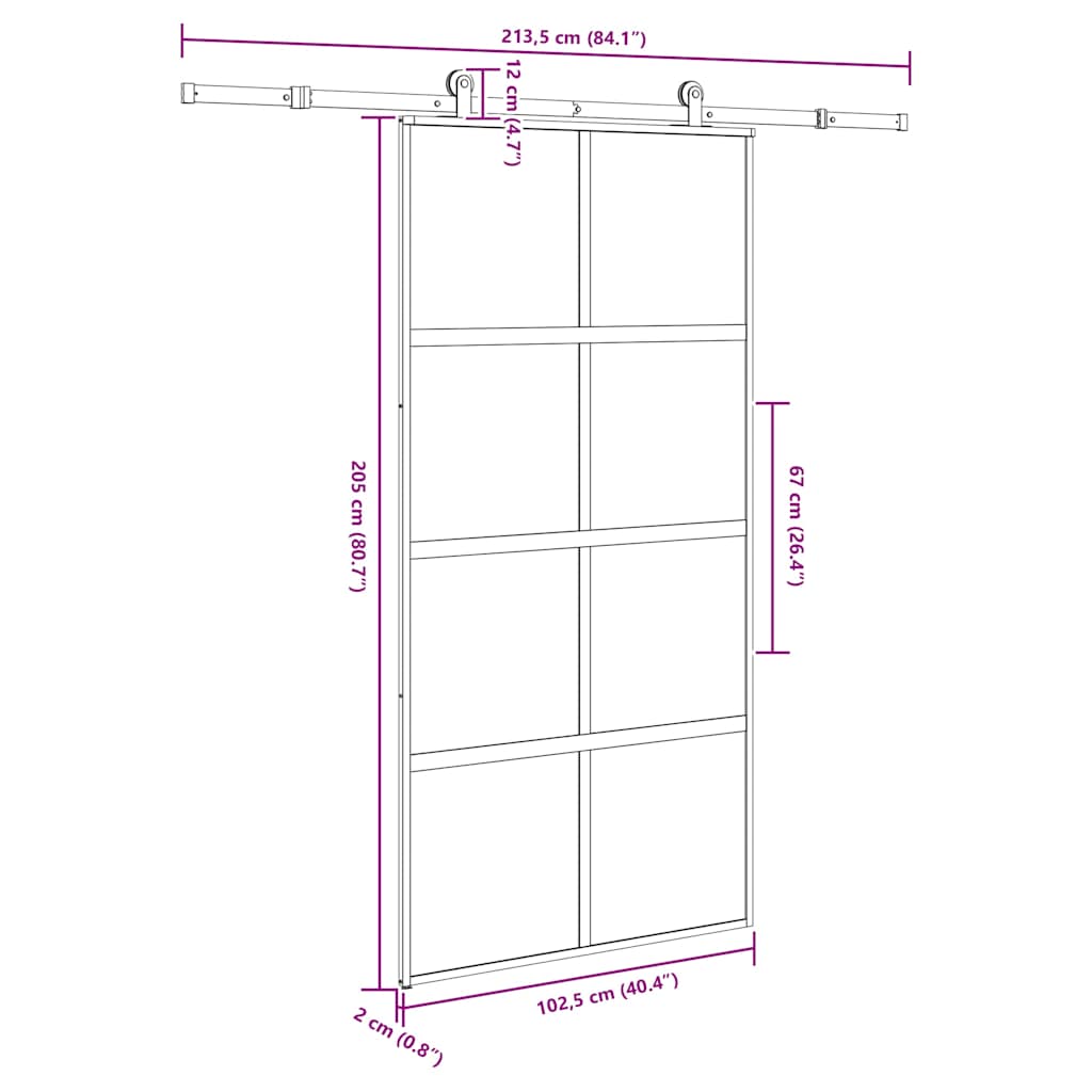 Sliding Door with Hardware Set 102.5x205 cm Tempered Glass and Aluminium 3333012