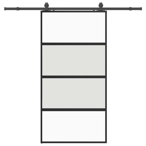 Create a stylish transition from one room to another with this sliding door! Durable material: Thanks to the intelligent structure, tempered glass is stronger and more durable than any other glass. Tempered glass is known to withstand heavy impacts, scratches, blows, etc.Stable and long-lasting frame: Aluminum is both lightweight and durable, with excellent corrosion resistance due to its self-protective oxide layer. This aluminum door is designed for longevity, making it an ideal choice for anyone seeking a robust door.Safe and noiseless: Thanks to the stopper, which stops the door when opening or closing by triggering the stop buffers, the sliding door can also be opened and closed quietly.Privacy design: The matt glass allows some light to pass through to create a bright living area and privacy at the same time.Space-saving design: This sliding door saves space and makes the room feel more spacious. It is the first choice for a simple and atmospheric interior design in a modern style.Easy to use: A sliding door hardware set is also included in the scope of delivery, so that installation is effortless. The hardware set is made of powder-coated steel and thus contributes to the robustness of the door. Good to know:For installation, you can consult our installation guide for the door and sliding hardware kits.