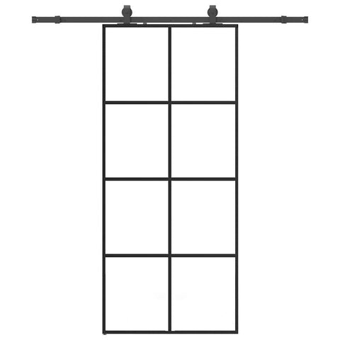 This sliding door is designed to enrich the entrance area of your house and also ensure better security for your home. Durable material: Thanks to the intelligent structure, ESG glass is stronger and more durable than any other glass. Tempered glass is known to withstand heavy impacts, scratches, blows, etc.Sturdy sliding rails: Steel is an exceptionally hard and strong material. It offers sturdiness and stability. The powder coating on steel creates a protective layer against wear and tear. Made of powder-coated steel, the sliding rails are sturdy, durable and heavy-duty.Quiet and smooth sliding: Thanks to the internal bearings, your internal sliding door will slide smoothly and quietly. Doorstops are also included to prevent the derailing of the rollers, while the rubber gaskets will buffer the bump from rollers and reduce the noise.Space-saving design: This sliding door saves space and looks more spacious. It is the first choice for a simple and atmospheric modern home design.Wide applications: The sliding barn door can be installed on both wooden walls and concrete walls. It's great for use in the bedroom, kitchen, barn, garage, etc. Good to know:Good to know: For installation, you can consult our installation guide for the door and sliding hardware kits.