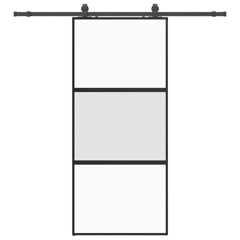 Create a stylish transition from one room to another with this sliding door! Durable material: Thanks to the intelligent structure, tempered glass is stronger and more durable than any other glass. Tempered glass is known to withstand heavy impacts, scratches, blows, etc.Stable and long-lasting frame: Aluminum is both lightweight and durable, with excellent corrosion resistance due to its self-protective oxide layer. This aluminum door is designed for longevity, making it an ideal choice for anyone seeking a robust door.Safe and noiseless: Thanks to the stopper, which stops the door when opening or closing by triggering the stop buffers, the sliding door can also be opened and closed quietly.Privacy design: The matt glass allows some light to pass through to create a bright living area and privacy at the same time.Space-saving design: This sliding door saves space and makes the room feel more spacious. It is the first choice for a simple and atmospheric interior design in a modern style.Easy to use: A sliding door hardware set is also included in the scope of delivery, so that installation is effortless. The hardware set is made of powder-coated steel and thus contributes to the robustness of the door. Good to know:For installation, you can consult our installation guide for the door and sliding hardware kits.