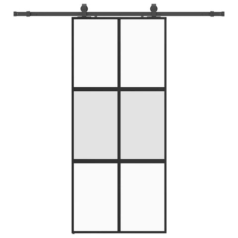 Create a stylish transition from one room to another with this sliding door! Durable material: Thanks to the intelligent structure, tempered glass is stronger and more durable than any other glass. Tempered glass is known to withstand heavy impacts, scratches, blows, etc.Stable and long-lasting frame: Aluminum is both lightweight and durable, with excellent corrosion resistance due to its self-protective oxide layer. This aluminum door is designed for longevity, making it an ideal choice for anyone seeking a robust door.Safe and noiseless: Thanks to the stopper, which stops the door when opening or closing by triggering the stop buffers, the sliding door can also be opened and closed quietly.Privacy design: The matt glass allows some light to pass through to create a bright living area and privacy at the same time.Space-saving design: This sliding door saves space and makes the room feel more spacious. It is the first choice for a simple and atmospheric interior design in a modern style.Easy to use: A sliding door hardware set is also included in the scope of delivery, so that installation is effortless. The hardware set is made of powder-coated steel and thus contributes to the robustness of the door. Good to know:For installation, you can consult our installation guide for the door and sliding hardware kits.