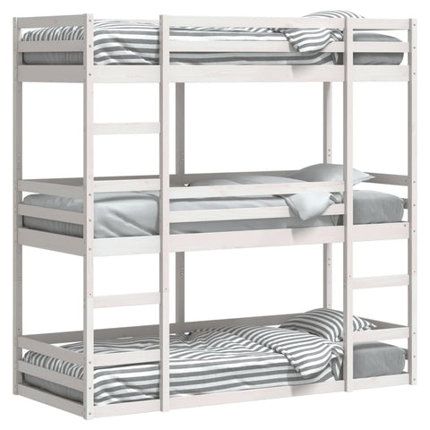 Triple Bunk Bed without Mattress White 75x190 cm Small Single Solid Wood Pine 3284261