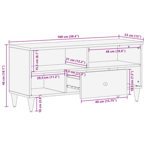 TV Cabinet 100x33x46 cm Solid Wood Mango 358300