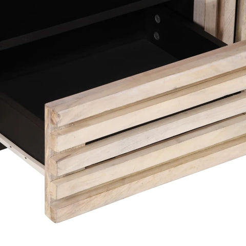 - Material: Solid mango wood with a bleached finish, steel