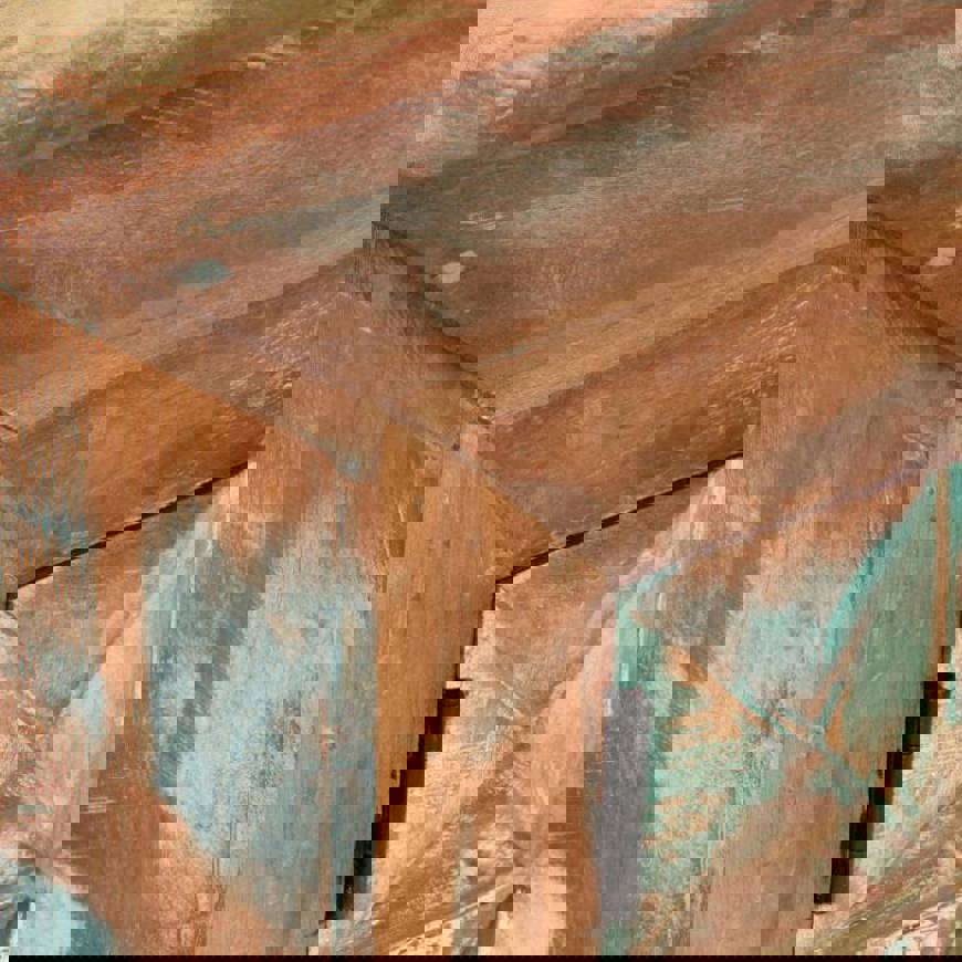 - Material: Solid reclaimed wood with mixed color finish.iron