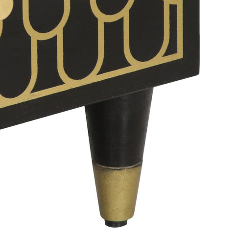 - Material: Solid mango wood with black finish, engineered wood, iron