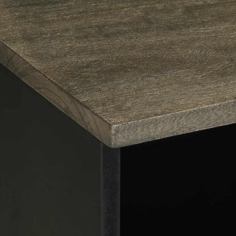 - Material: Solid mango wood with grey finish sanblasting look, engineered wood, metal