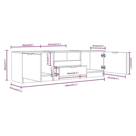 TV Cabinet Grey Sonoma 140x35x40 cm Engineered Wood 817112