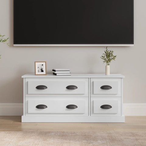 Featuring a stylish yet practical design, this TV cabinet is meant to become a focal point of your room. Durable material: The engineered wood is of exceptional quality with smooth surface and also features strength, stability, and resistance to moisture.Ample storage space: Equipped with 4 drawers, the TV stand offers ample storage space to keep all your magazines, DVDs and any other items well organised.Sturdy top: The top of the TV unit provides a secure surface to display decorative objects, photo frames or potted plants.Flexible installation: The drawers of the media cabinet can be installed on the left or right according to your personal habits and convenience. Good to know:To make assembly as easy as possible, each product is delivered with a manual.