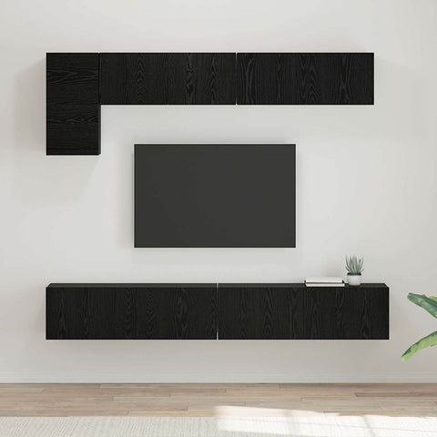 TV Cabinet Set Wall-mounted 5 pcs Black Oak Engineered Wood 3393385