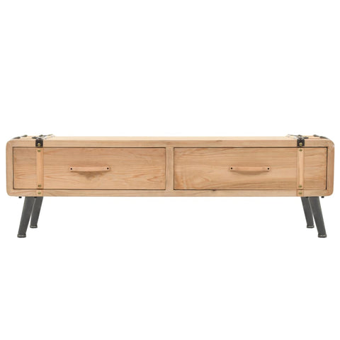 This retro-style wooden TV cabinet exudes a rustic charm that will make a decorative addition to your bedroom or living room decor. This highly stable and durable HiFi cabinet was crafted from solid fir wood. The sturdy top is ideal for placing your TV or HiFi system as well as some decorative items such as vases or fruit baskets. The drawers provide ample space for keeping your DVD player, game console, streaming device, media carriers, etc. neatly organised. The special luggage design adds to this lowboard's vintage style. Assembly is easy.