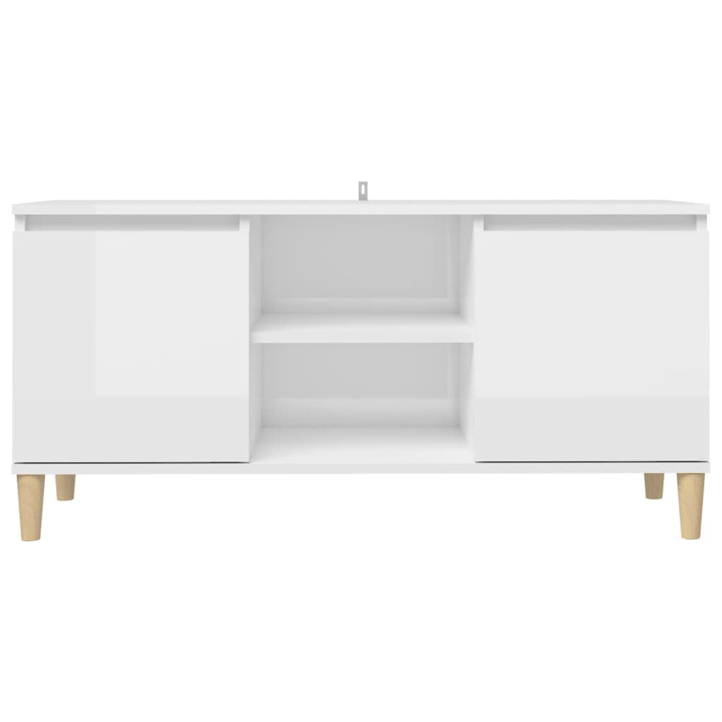 TV Cabinet & Solid Wood Legs High Gloss White 103.5x35x50 cm 805965