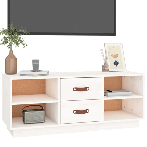 TV Cabinet White 100x34x40 cm Solid Wood Pine 818226