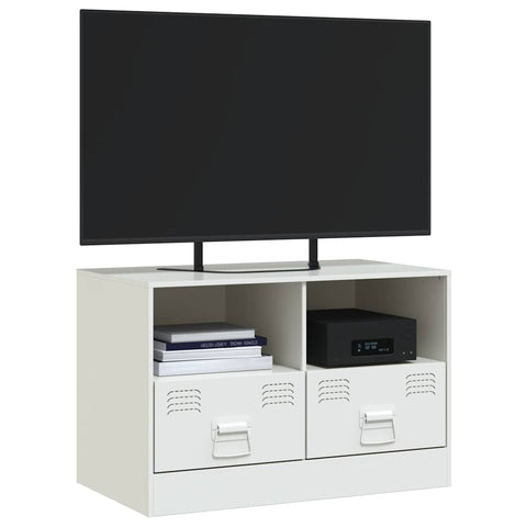 This sturdy TV cabinet is designed to be a focal point of your room with a trendy yet practical design. Stable material: The TV cabinet's frame is made of cold-rolled steel. Cold-rolled steel is a kind of low-carbon steel produced by a "cold rolling" method and processed at near normal room temperatures. Cold-rolled steel has a smoother surface, greater strength, and higher precision.Ample storage space: This cabinet offers handy storage space for keeping your magazines, books, remote controls and other small items well-organised and within reach.Easy to maintain: The table is easy to clean with a damp cloth and requires less maintenance.Practical handle: The TV cabinet comes with 2 handles that make it easy to open and close the cabinet while also adding to extra beauty.