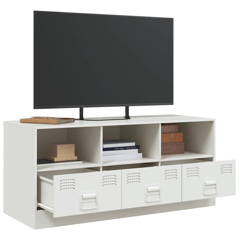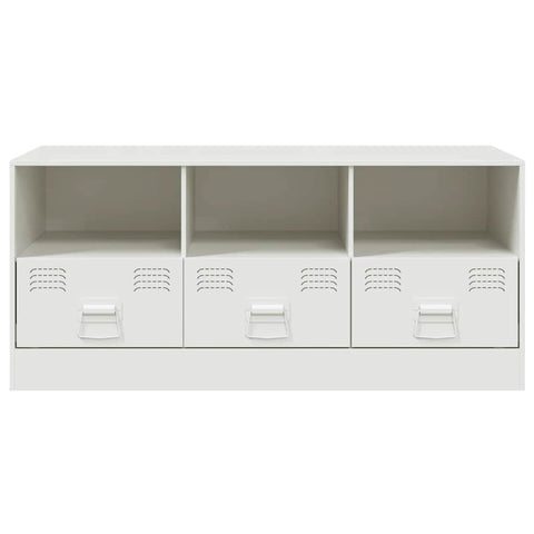 This sturdy TV cabinet is designed to be a focal point of your room with a trendy yet practical design. Stable material: The TV cabinet's frame is made of cold-rolled steel. Cold-rolled steel is a kind of low-carbon steel produced by a "cold rolling" method and processed at near normal room temperatures. Cold-rolled steel has a smoother surface, greater strength, and higher precision.Ample storage space: This cabinet offers handy storage space for keeping your magazines, books, remote controls and other small items well-organised and within reach.Easy to maintain: The table is easy to clean with a damp cloth and requires less maintenance.Practical handle: The TV cabinet comes with 3 handles that make it easy to open and close the cabinet while also adding to extra beauty.