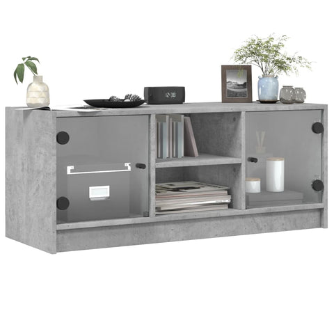 TV Cabinet with Glass Doors Concrete Grey 102x37x42 cm 836374