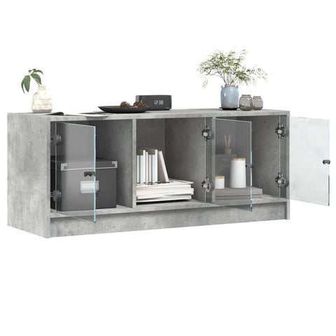TV Cabinet with Glass Doors Concrete Grey 102x37x42 cm 836409