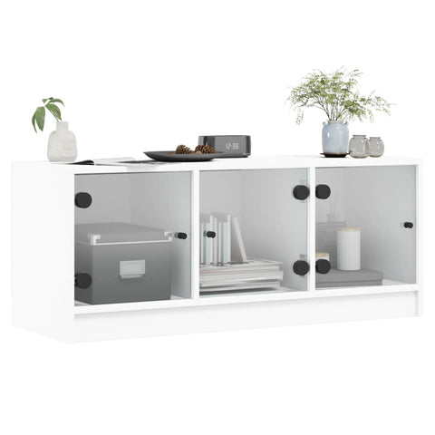 TV Cabinet with Glass Doors White 102x37x42 cm 836406