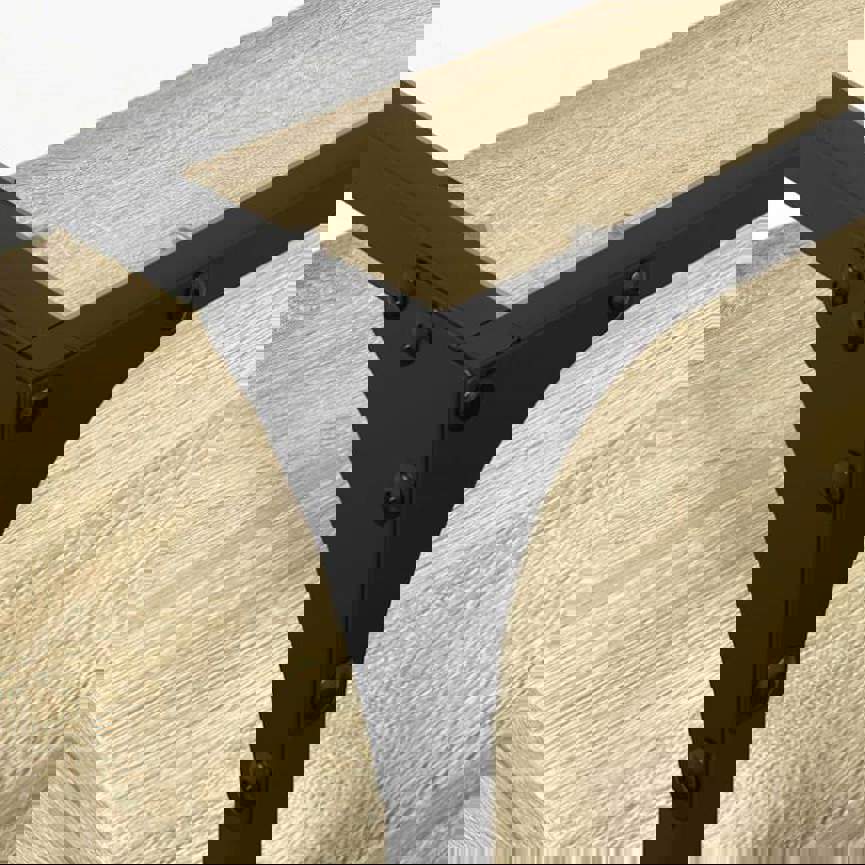 This sturdy TV cabinet is designed to be a focal point of your room with a trendy yet practical design. Metal frame: The metal frame adds an industrial style to your interior while ensuring durability and stability.Ample storage space: The TV stand offers ample storage space for keeping your various daily essentials well-organised and within easy reach.Glass top: The top of the side table provides a visible and ample surface to place snacks, drinks, vases, fruit bowls, or other decorative items.Practical design: This side cabinet has two drawers, which can keep your stored items clean. Warning:To prevent it from tipping over, this product must be used with the provided wall attachment device.