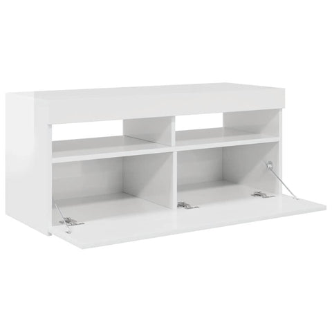 TV Cabinet with LED Lights High Gloss White 90x35x40 cm 804388