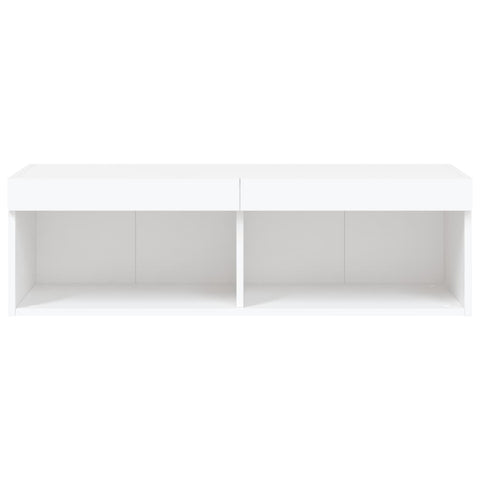 Featuring a trendy yet practical design, this TV cabinet with LED lights will become a focal point of your room. Durable material: The engineered wood is of exceptional quality with smooth surface and also features strength, stability and resistance to moisture. Made of engineered wood, this TV stand is sturdy and durable.Ample storage space: The TV unit offers ample storage space for keeping your DVD players, receivers, disks, and other small items well organised and within reach.RGB LED lights: This entertainment centre features RGB LED lights, which have different menus to change the colour of lights and let the colour adjust automatically.Wall-mounted design: This media cabinet can be wall-mounted to add extra storage space. That way, you can maximise your floor space and keep the area clean. Good to know:Screws and plugs for inside the wall are not included. We advise to find and use screws and plugs suitable specifically for your walls. If you're not sure, you can consult with a professional. Please read and follow each step of the instructions.The product has a USB connector that requires a certified 5V USB power source (not included).