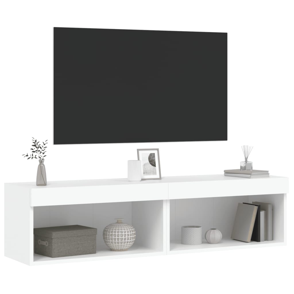 Featuring a trendy yet practical design, these TV cabinets with LED lights will become a focal point of your room. Durable material: The engineered wood is of exceptional quality with smooth surface and also features strength, stability and resistance to moisture. Made of engineered wood, these TV stands are sturdy and durable.Ample storage space: These TV units offer ample storage space for keeping your DVD players, receivers, disks, and other small items well organised and within reach.RGB LED lights: These entertainment centres feature RGB LED lights, which have different menus to change the colour of lights and let the colour adjust automatically.Wall-mounted design: These media cabinets can be wall-mounted to add extra storage space. That way, you can maximise your floor space and keep the area clean. Good to know:Screws and plugs for inside the wall are not included. We advise to find and use screws and plugs suitable specifically for your walls. If you're not sure, you can consult with a professional. Please read and follow each step of the instructions.The product has a USB connector that requires a certified 5V USB power source (not included).