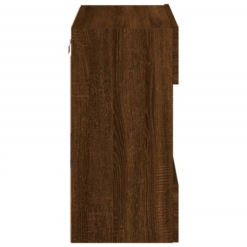 TV Wall Cabinet with LED Lights Brown Oak 58.5x30x60.5 cm 837098