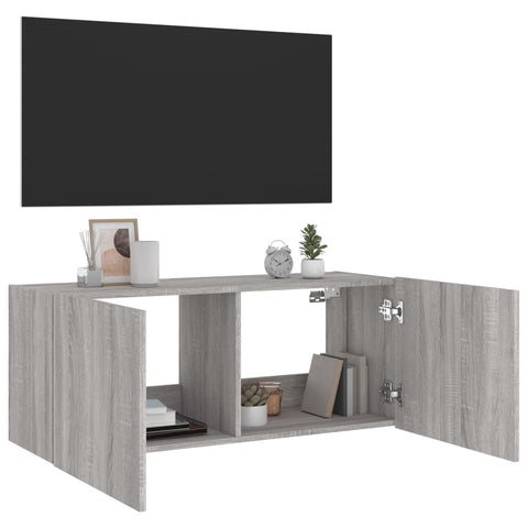 TV Wall Cabinet with LED Lights Grey Sonoma 100x35x41 cm 837328