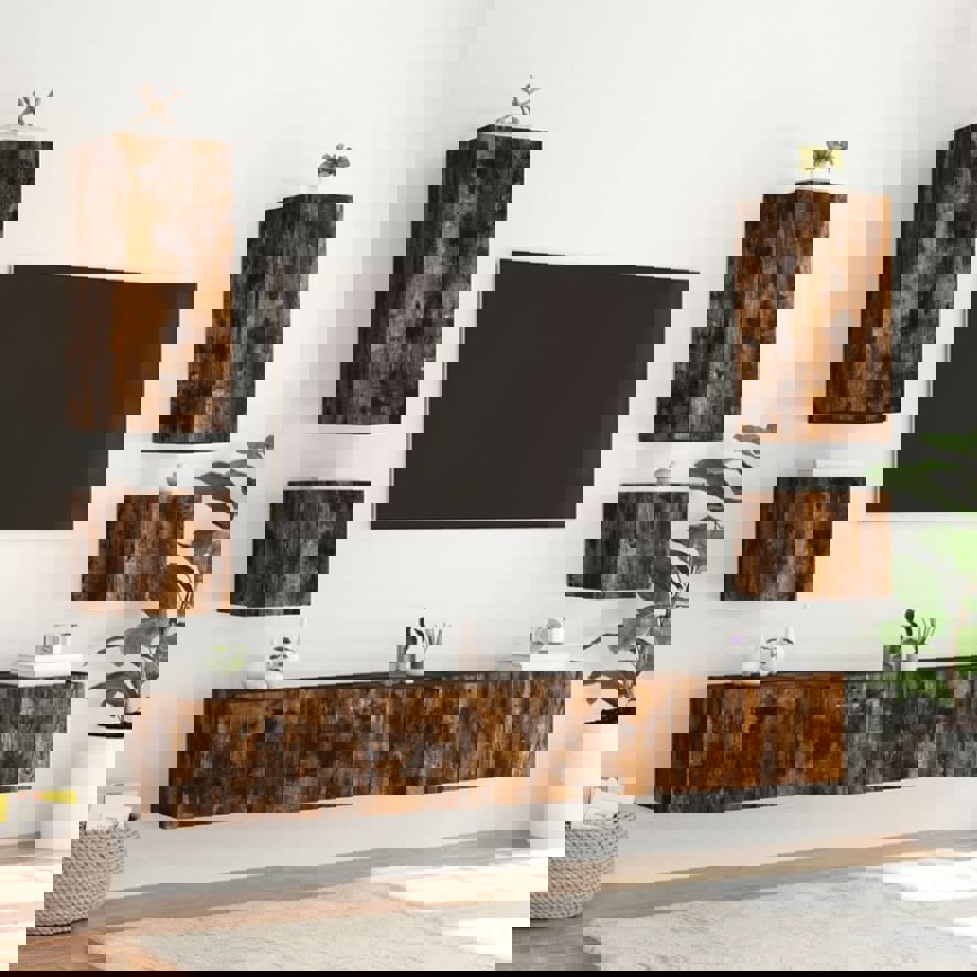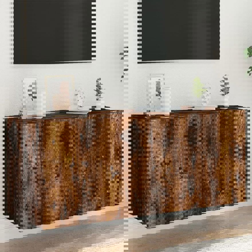 TV Wall Cabinet with LED Lights Smoked Oak 100x35x41 cm 837327