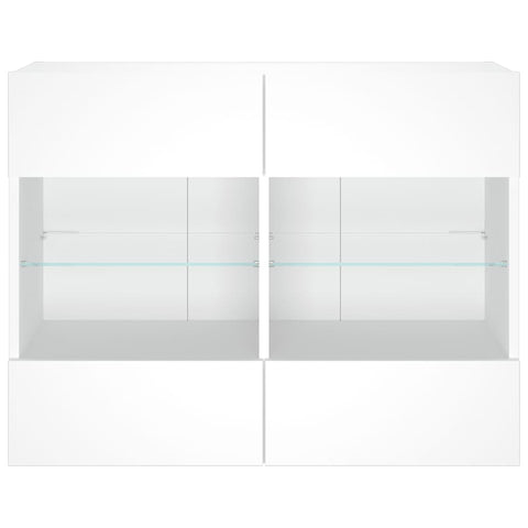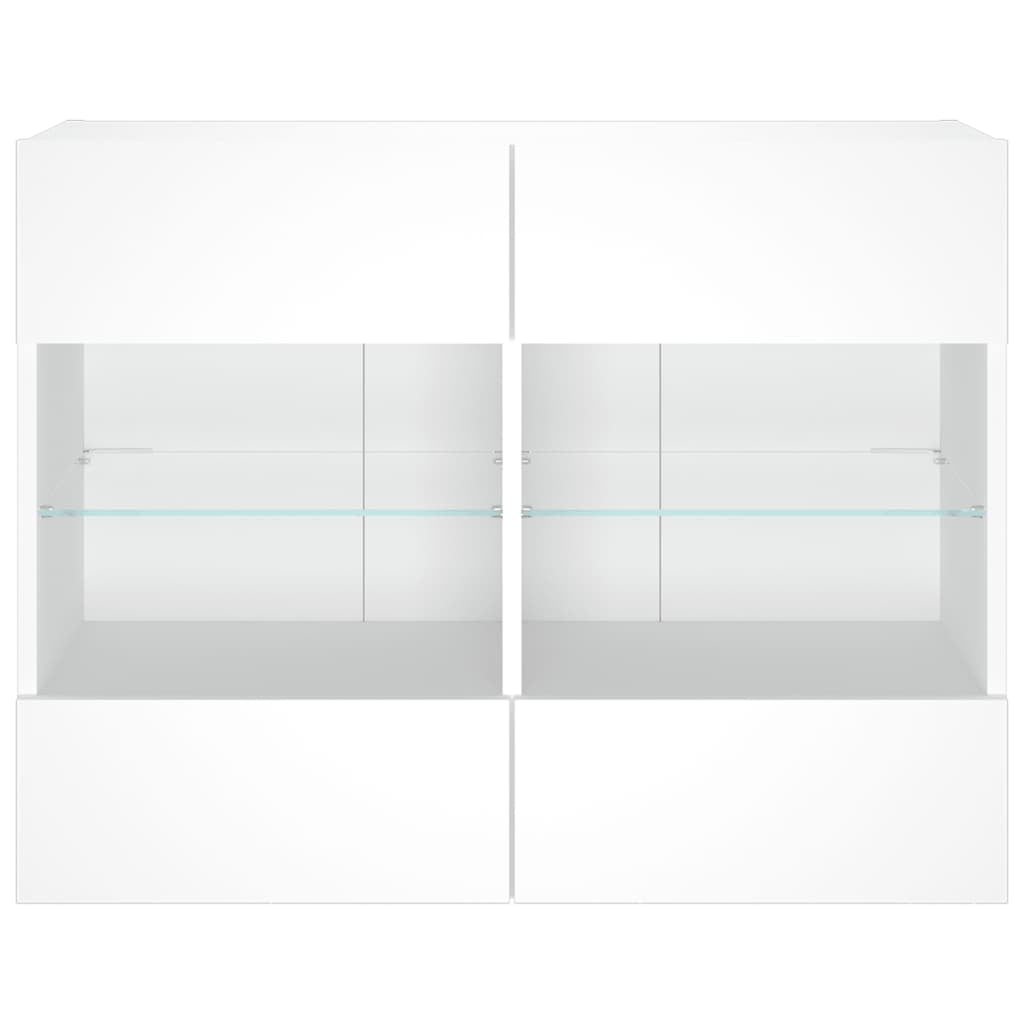 This TV wall cabinet is the perfect solution for your living space to maximise space and keep the floor areas uncluttered. Durable material: The engineered wood is of exceptional quality with a smooth surface and also features strength, stability and resistance to moisture.RGB LED lights: The wall media cabinet is equipped with vibrant RGB LED lights. With various customisable menus, you can effortlessly change the colour of the lights and even set them to adjust automatically. These LED lights not only enhance the contemporary look of the floating TV unit but also add to its trendy appeal.Ample storage space: The TV wall unit has 2 glass shelves and 4 compartments behind the doors that offer ample space to keep your small items like books, DVDs, and magazines neatly organized and within reach.Versatile: The cabinet is multifunctional and can be used as a TV wall cabinet or a wall-mounted bedside cabinet. You can also combine it with other cabinets to create a stunning living wall.Wall-mounted design: This LED cabinet can be wall-mounted to add extra storage space. That way, you can maximise your floor space and keep the area clean. Good to know:Screws and plugs for inside the wall are not included. We advise to find and use screws and plugs suitable specifically for your walls. If you're not sure, you can consult with a professional. Please read and follow each step of the instructions.The product has a USB connector that requires a certified 5V USB power source (not included).
