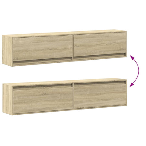 This TV wall cabinet is the perfect solution for your living space to maximise space and keep the floor areas uncluttered. Stable and durable material: Engineered wood is a durable and stable material with a smooth surface that is resistant to moisture, warping, and splitting, making it a reliable choice for a variety of projects.RGB LED Lights for a pleasant ambience: This cabinet features LED lights that can be easily adjusted to create a personalised light show. You can customise the modes, colours, and brightness to enhance the ambience of your interior space.Ample storage space: This TV cabinet provides ample storage space for keeping your magazines, books, DVDs, and multimedia devices well-organised and within reach.Wall-mounted design: This LED cabinet can be wall-mounted to add extra storage space. That way, you can maximise your floor space and keep the area clean. Good to know:Screws and plugs for inside the wall are not included. We advise to find and use screws and plugs suitable specifically for your walls. If you're not sure, you can consult with a professional. Please read and follow each step of the instructions.The product has a USB connector that requires a certified 5V USB power source (not included).